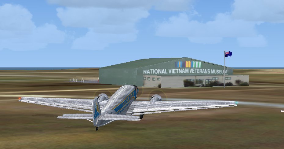 In case anyone looked in the museum parking lot and wondered where our Tante Ju has gone, I took the liberty of borrowing her. She's been shipped to Oz and I've just flown the test flight for the 'Great Australian Air Rally' aka GAAR 2010. I thought it might be a nice way to start flying with my new computer, running FSX with high graphics and trimming in my brand new Saitek X52 Pro...