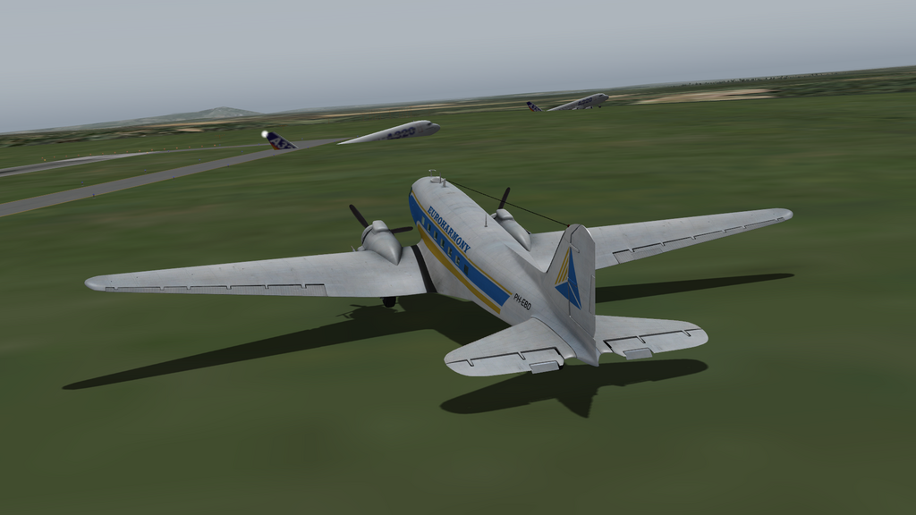 The Leading Edge DC-3 I was flying on X-lane10, does not give much frontal view, when sitting on the ground..