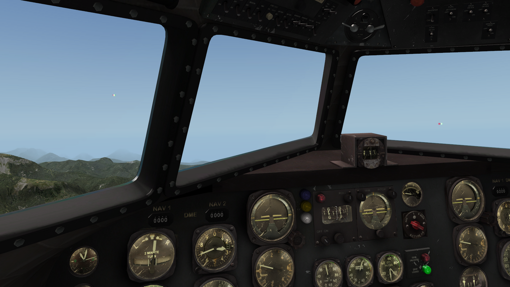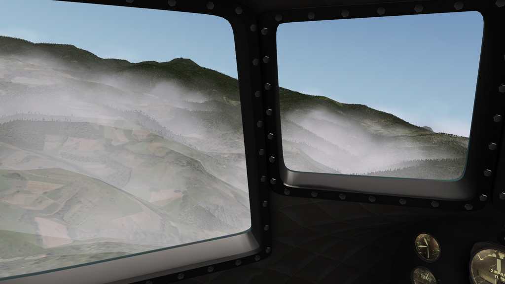 At around half-way the trip, I lost both engines. Probably I overloaded them trying to catch up with Peter and David, at high altitude. Not a fuel issue, this time. Temperatures appeared to remain in the green, until the engines stopped.By then CHT gauges indicated 0. Either the gauges broke down, or some electrical failure had occurred, or the cylinder heads were actually really cold. Cannot determine that any more. But flying in mountainous terrain, without propulsion, that's not a preferred situation. AYGA was the nearest field, so I tried an emergency landing there. I did not have the gliding range, though (I kept her pretty neatly at best glide speed). But, lucky for me, the terrain in the vicinity of the airport was relatively flattened. A last minute gear-down, and full flaps to bleed off all possible speed, I gently touched down in a grass patty some 3 nm short of the airfield. Flightlogger found that I had landed (not at destination), not crashed, so I must have done it right. ;) After some quick repairs, I was soon ready to depart again. I would take the direct rout to CGC, deviating only to avoid the mountains. I ended up just ahead of Peter and David, while Gian had already Concorded past me to land as #1.