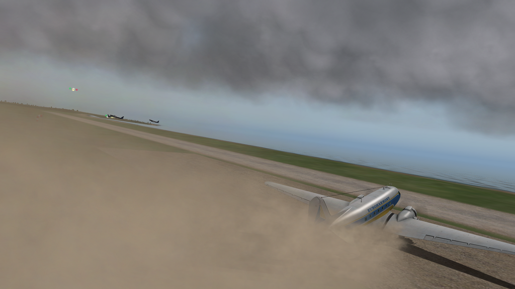 Creating my own dust storm at the dirt strip of Cape Gloucester  ;D As you can see, there are some differences in scenery between the sims.