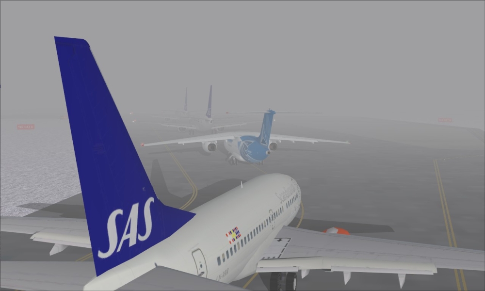 Bit of a queue for the runway, low visibility operations underway...